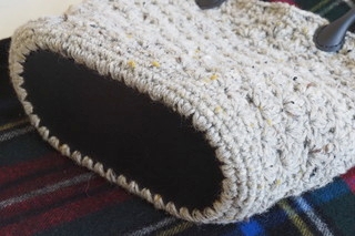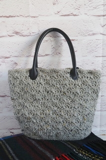 自分用にバッグを編みました。グレーがベースになっていて、からし色や黒、白などのネップがランダムに入っている、ナチュラルだけれどさりげないアクセントがある毛糸を使用しています。シックな色なので、編み方を曲線がきれいな松編みにしました。ぼこぼことボリュームがある編み地も暖かみがあって好きです。持ち手は合皮のものを付けました。底は100円ショップで購入した底板を使用しています。物を入れたときに形が崩れず、かっこよく持てそうです。実はこのバッグの毛糸は、数年前にスヌードを編んだ毛糸です。ケーブル編みを入れて、首周りをおしゃれに飾ってくれるかたと思っていたのですが、肌触りが思ったより良くなくて、ほどいてしまったのでした。そして今回バッグを編むのに使ったのです。バッグなら肌に直接触れることは少ないですし、うまく再利用できたなぁと思っています。どんな色の服でも合わせやすいグレーのバッグ。この冬たくさん使いたいなと思います♪