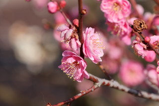 まだ、五分咲きでしょうか・・ 香りも良く、梅は、この満開前がきれいですね。 |