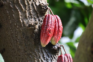 左はカカオの実だそうです。 下は、ランの仲間?とのことでした。 |