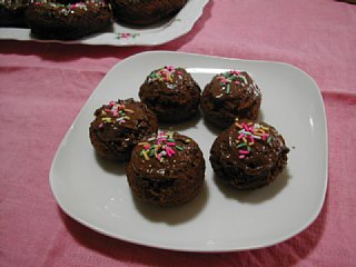 生協で買った全粒粉のホットケーキミックスでドーナツを作り、テンパリングしたチョコを塗りカラースプレーを散らしました。