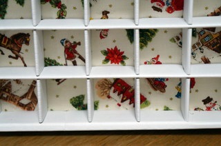 屋根には赤いフェルトを貼り、本体の内側にはクリスマスの雰囲気がいっぱいの布を貼りました。