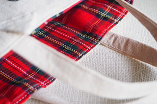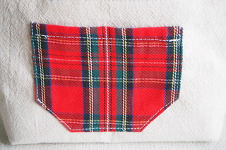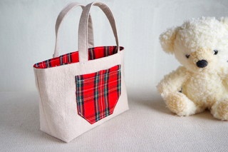 後ろ側には、タータンチェックの布でポケットをつけました。