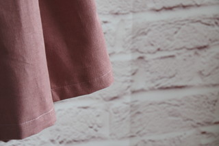 出来上がったスカートをるーに見せると、早速はいてみてくれて、その後ウエストのところを首まで上げて「あ!これマントにもなるなぁ!」とすごい発見をしたかのように叫んでいました。