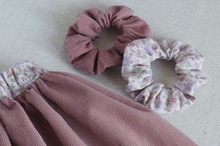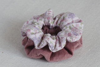また、同じコーデュロイと花柄を使って、小さなシュシュも作りました。