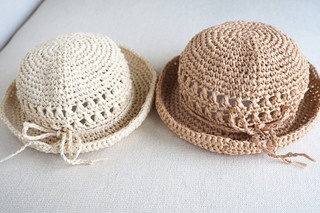 これまでに何度か使ってきたマニラヘンプヤーンという糸で、孫に編んだ帽子です。