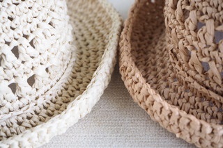 編み方は同じですが、ひとつは白い「ミルク」という色、もうひとつは麦わら帽子を思わせる「ストロー」という色。