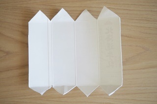 牛乳パック24個すべてを写真のように開き、三角柱の形にガムテープで留めます。