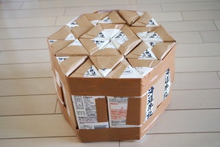 その中で、牛乳パック24本を使って六角形のイスを作っていたのを見て、かわいいなぁと思いました。