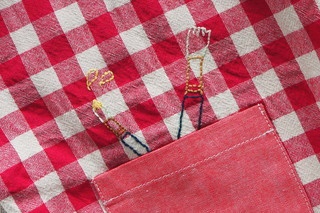 Yちゃんが絵の具を付ける前に、刺しゅうでちょっと落書き。