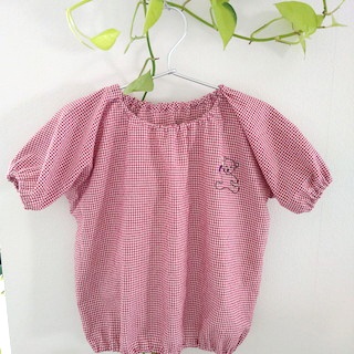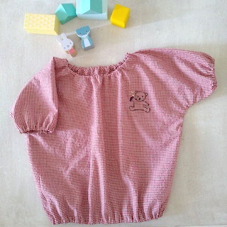 長袖のスモックは大きなギンガムチェックでしたが、今回の半袖は細かいギンガムチェック。