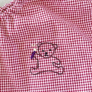 左の胸のあたりに、絵筆を持ったクマさんを刺しゅうしました。