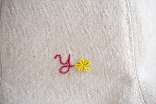 表側のサイドにYちゃんのイニシャルとお花を刺しゅう。