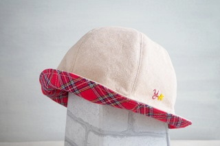 でも私は「ベージュの方を表にして、ブリムを少し折り返してちらっとチェックを見せる」という被り方を長女に勧めておきました。