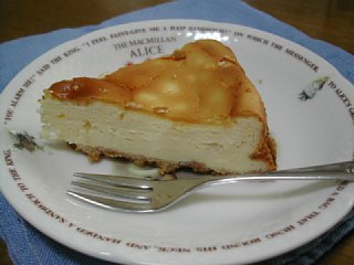 チーズケーキにしました。でもこのチーズケーキはいつもの、材料全部ミキサーに入れて