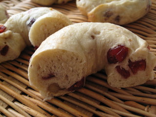 このところベーグルにいろんなものを入れて焼いています。これはクランベリーとクルミを投入。色もきれいでクランベリーはなんだかかわいい♪でもクランベリーだけではだめなんです。何か物足りない感じ。クルミは色は地味だけど存在感大きいです。ベーグルにはレーズンとクルミも合うし、チーズを入れてもおいしいです。我が家では朝食にもおやつにも大活躍のベーグルです。