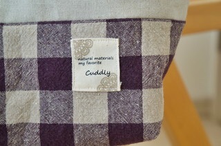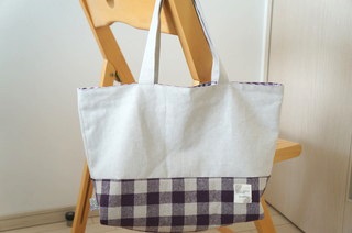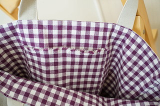 表はアイボリーのキャンパス地と紫の大きめギンガムチェック。