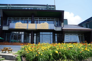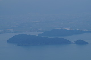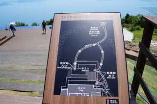 | テラスのカフェで休憩です。 席からは、こんな感じで、大きな琵琶湖を眼下に素晴らしい景色が広がります。 |