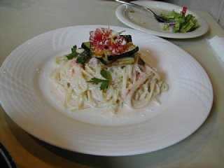 友達が注文した冷製パスタ。サ−モンのクリ−ムパスタです。ちょっと味見しましたが、サ−モンの塩味とクリ−ムソ−スがマッチしておいしかったです。 |