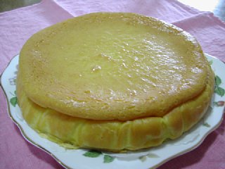 生クリーム200g・砂糖80g・小麦粉大さじ3・全卵3個・レモン汁少々・ラム酒少々をミキサーでガーっとして型に入れて180℃
