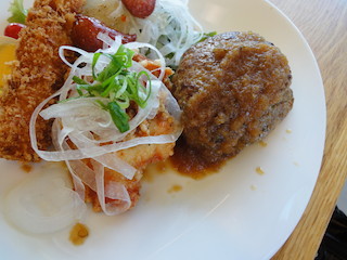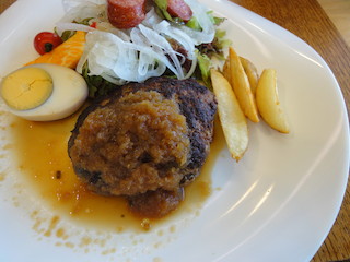 こちらは私が頂いたハンバーグランチ。とっても大きなハンバーグで食べ応えがありました。での和風ソースでさっぱり食べられます。 |