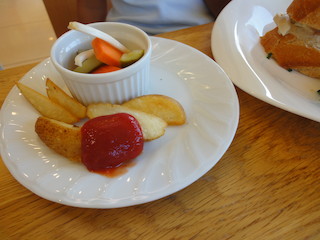 友達の娘さんはピクルスがちょっと苦手みたいでしたが、ポテトもサンドイッチもぺろりと食べていました。 |