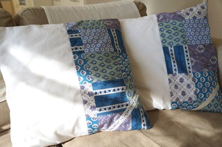それも素敵なのですが、リビングのクッションカバーが随分薄汚れてきていたので、なんとかクッションカバーにできないかと考えました。