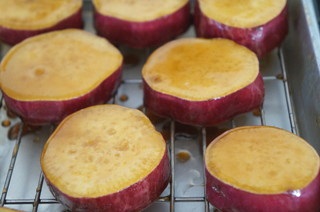 私の頭の中にある大学いもは、こんな輪切りではなかったので、驚きでした。