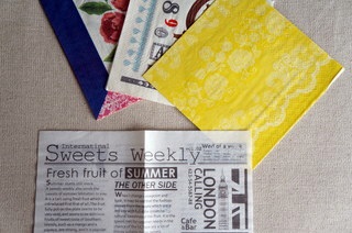 キットには3枚の紙ナプキンが入っていましたが、私はその中の1枚に描かれていたマカロンとカップケーキのところを切り取り