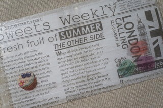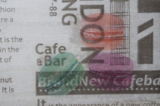 英字新聞風の紙ナプキンのトップ記事は”SWEETS WEEKLY”。それで、マカロンがいいかなと思ったのです。