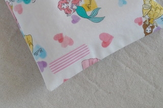 選んだ布にエルサはプリントされていませんでした。それでもかわいいプリンセスたちがたくさんプリントされているので、孫は了承してくれました。
