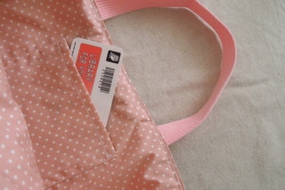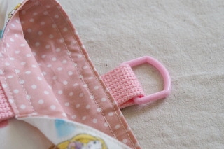 上履き入れは、幅の広いテープをDカンに通して持つスタイル。