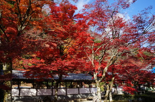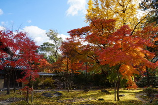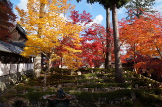 | これは法堂の横の庭。黄色に赤に橙と、青空に映えていました。 | 開山堂からの眺め。 |