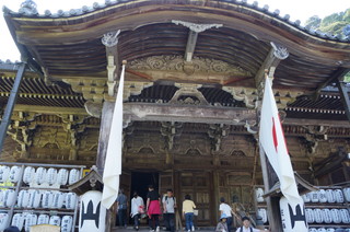 | 家族全員御朱印をいただきました。 | この摩尼殿は京都清水寺と同じ舞台づくりになっています。 |