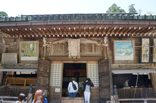 | にない堂。この雰囲気がとっても良いです。 | 常行堂と法華堂から成っています。弁慶が両堂をつなぐ廊下に肩を入れて担ったとの言い伝えから、にない堂とも呼ばれています。国重要文化財に指定されています。 |