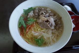 | 比叡山ドライブウェイの途中、峰道レストランに寄りました。 | 伝教大師40歳のご尊像が「天台薬師の池」を眺めるようにして立つ。台座を入れた高さ11メートルあります。頭の上にカラスが休憩していました。 |