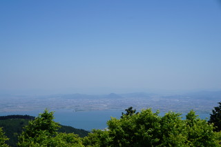 | 天気も良く、花木も嬉しそうです。 | 眼下には、琵琶湖に、大津の街並みが・・・・。 |