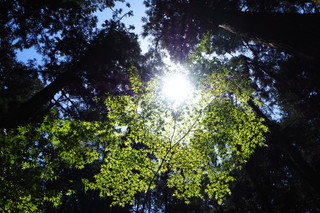 5月らしい爽やかな天気で、空気もヒンヤリし、木々からの木漏れ日が気持ち良い、そんな空間です。 こちらの鐘楼で鐘もつけます。 |
