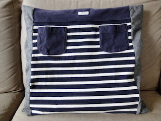今着るには、ところどころ色あせていてかっこ悪いかもしれないけど、クッションカバーにすれば