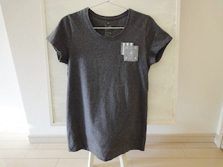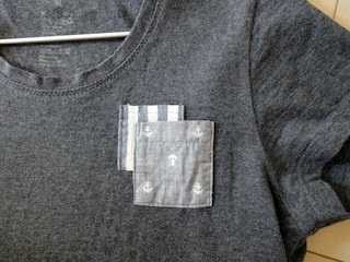 ひとつめはチャコールグレーのTシャツの胸のところに小さなポケットをふたつ縫いつけたもの。