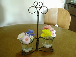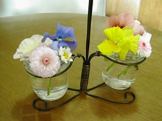 お砂糖の入っていた試験管型ケ−スを使って一輪挿しを作りました。 (06.3.18) |