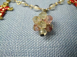 ビーズボールとチェーンの色を長女用はアンティークゴールドに、次女用はピンク系とゴールドとの組み合わせにして