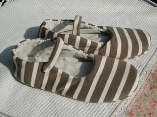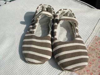 着古したボーダーティーシャツでルームシューズを作りました。色あせて着るにはちょっと・・・と思うようなティーシャツも