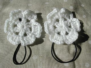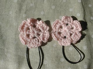 毛糸で出来ます。小さいモチーフで次女のヘアゴムを作り
