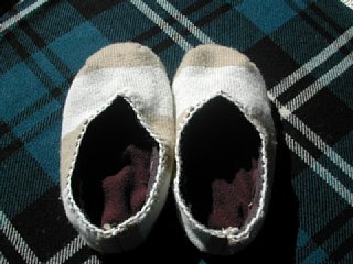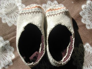 着古したセーターとフリースを使ってルームシューズを作りました。毛玉だらけの古いセーターやもう小さくなってしまった子供用
