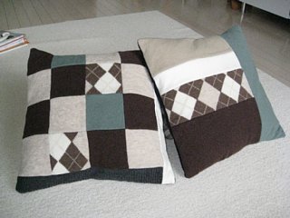 | 古着のセーターから作ったクッションカバー(09年2月) |