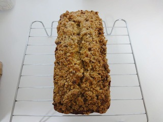 見たところ普通のパウンドケーキのようですが、ごぼうをすりおろしたり、生地の上にぱらぱらと散らすクランブルを作ったり、