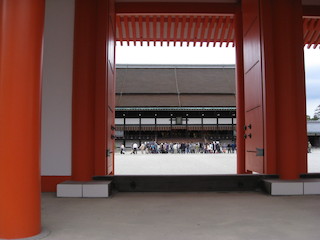 | 承明門から、紫宸殿を眺める | 紫宸殿。 即位礼などの重要な儀式を執り行う最も格式の高い正殿。中央には御座「高御座」、「御帳台」が置かれ、現在のものは大正天皇の即位礼にて古式に則り作られたものである。 |