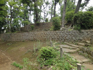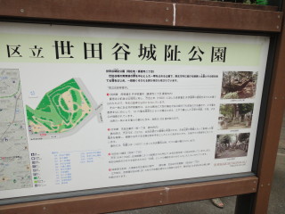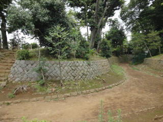 | 土塁と濠の跡。写真では石垣がありますが、旧世田谷城は土塁の城だったようです。 |