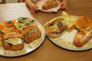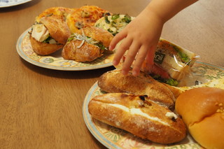 お皿に盛って撮影してから、それぞれのパンを食べやすくカットすればみんなたくさんの種類のパンが食べられると思ったのですが・・・