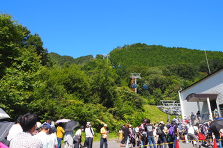 | 箱館山スキー場のゲレンデには、このゴンドラで上がります。1323mのゴンドラになります。 この日は、比較的多くの人出でした。 |